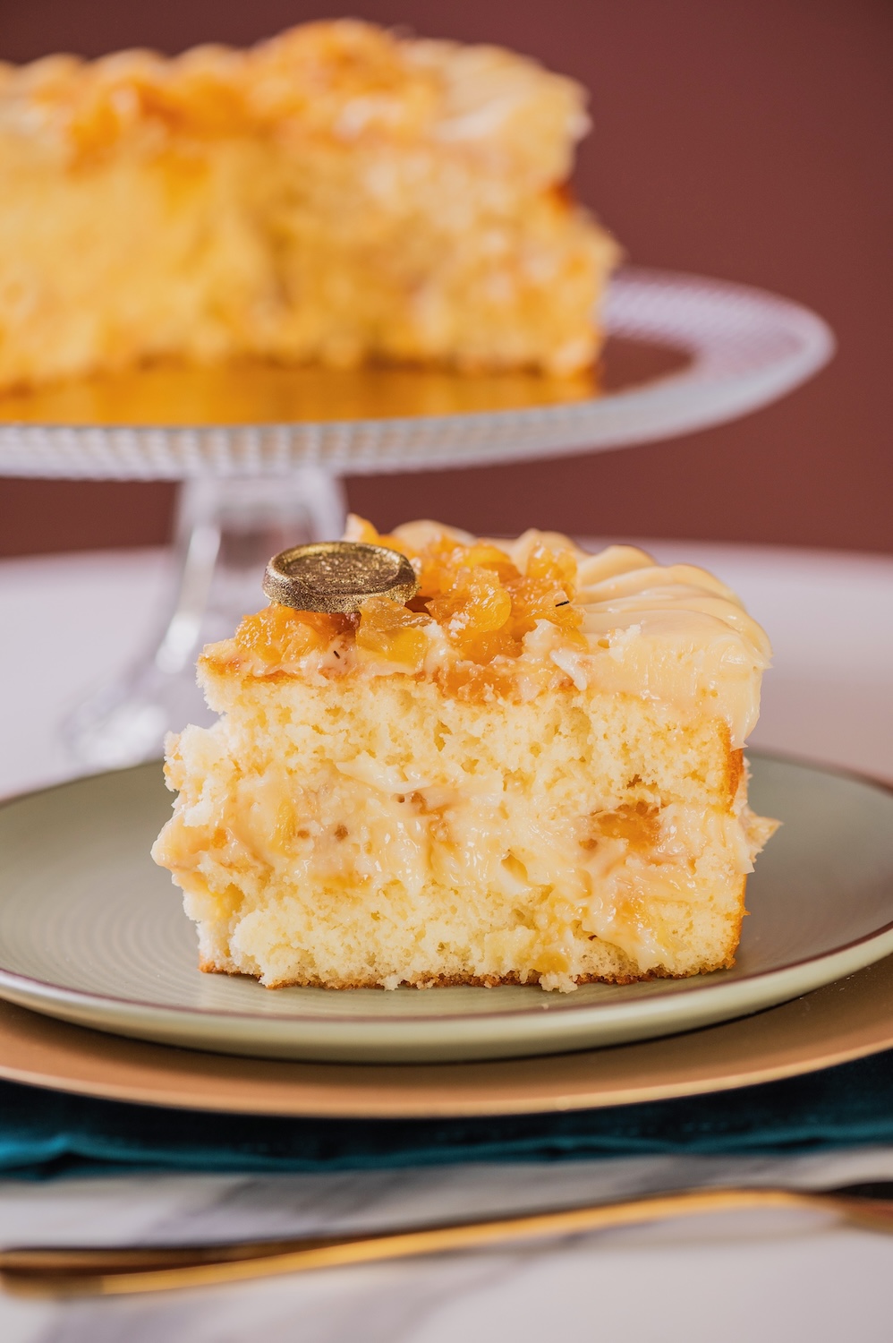 Nossa famosa torta gelada agora disponível em um novo modelo! Essa torta tem 2 camadas de bolo de baunilha molhadinho com 1 camada de recheio de abacaxi com coco e cobertura de brigadeiro branco, envolta em acetato;