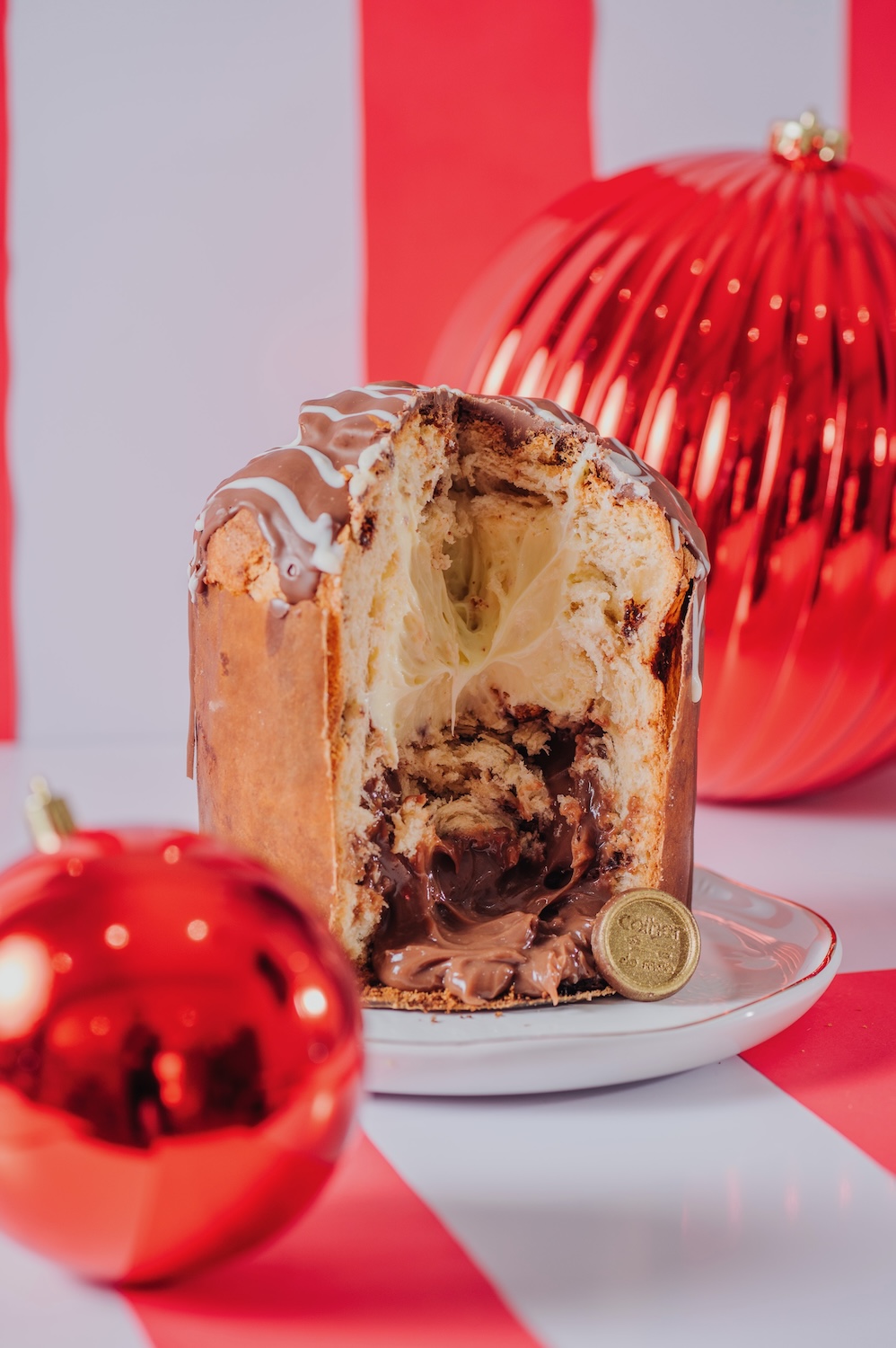 Chocottone feito com bastante recheio artesanal, para quem ama doce! Recheado com mousse de ninho e brigadeiro ao leite;