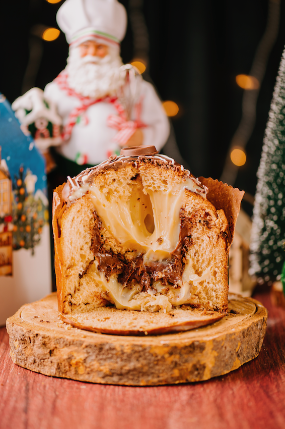 Chocottone feito com bastante recheio artesanal, para quem ama doce! Com recheio de brigadeiro de ninho e nutella pura; Pesa aprox 900g; Embalado em caixa para presente;