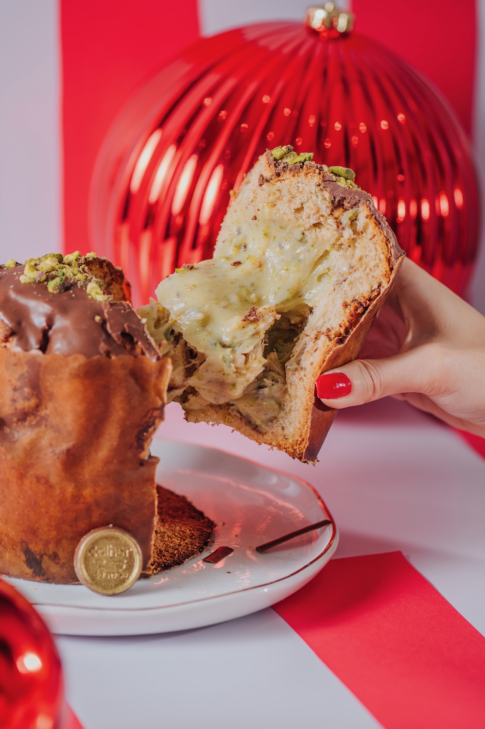 Chocottone feito com bastante recheio artesanal, perfeito para quem ama bastante doce! Recheado com brigadeiro de pistache;